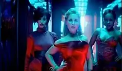 The accompanying music video for "Red Dress" was directed by Tim Royes and filmed in January 2006.[48] Berrabah revealed details about the music video during an interview that was published on the group's official website, saying: "We're shooting the vid this week with director Tim Royce. We're really looking forward to it as there are going to be lots of costume changes. It's going to have a catwalk show theme with lots of mad outfits – very over the top and extravagant – we can't wait!"[48] Royes went on to direct the music video for Sugababes' single "Easy" in the same year.[49] The Sugababes wore endorsed hosiery in scenes for the video as part of their endorsement with Pretty Polly.[50]