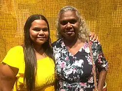 Regina Pilawuk Wilson with her granddaughter Leaya Wilson at the opening of "Marking the Infinite: Contemporary Women Artists from Aboriginal Australia" at The Phillips Collection, Washington, D.C.