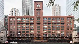 The Reid, Murdoch & Co. Building, also known as the Reid Murdoch Building, the Reid Murdoch Center or the City of Chicago Central Office Building, is a seven-story office building in Chicago. It was constructed in 1914 and was listed on the National Register of Historic Places in 1975.[1][2] It also has been designated as a Chicago Landmark;[3] a Commission on Chicago Landmarks plaque can be found next to the LaSalle Street entrance.[4] It is located at 325 North LaSalle Street in the River North neighborhood, alongside the Chicago River between LaSalle Street and Clark Street.