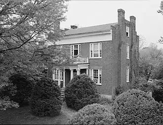 Reid–White–Philbin House, also known as Evergreen House, is a historic home located at Lexington, Virginia. It was built in 1821, and is a two-story, Federal style brick dwelling. It features an early entry porch supported by Ionic order columns A two-story brick addition was made to the left-hand gable end in 1847. The addition has a two-tier front portico and a post-bellum conservatory with bay window. Attached to the rear is a 1+12-story stone kitchen wing dated to the second half of the 18th century. Also on the property is a contributing early- to mid-19th century dependency. It was built for locally prominent businessman, educator, and politician Samuel McDowell Reid.[3]