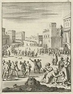 The Baháʼí Faith originated in Iran during the 1840s as a messianic movement out of Shia Islam. Opposition arose quickly, and Amir Kabir, as prime-minister, regarded the Bábis as a threat and ordered the execution of the founder of the movement, the Báb and killing of as many as 2,000 to 3,000 Babis.[99] As another example two prominent Baháʼís were arrested and executed circa 1880 because the Imám-Jum'ih at the time owed them a large sum of money for business relations and instead of paying them he confiscated their property and brought public ridicule upon them as being Baháʼís.[100] Their execution was committed despite observers testifying to their innocence.