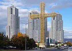 Islam has had a significant influence in North Macedonia since the Ottoman conquests in the 14th and 15th centuries. Many Turks settled in the region of Macedonia and introduced aspects of Islamic culture. Most Albanians and some ethnic Macedonians converted to Islam. These Macedonian Muslims or Torbeši generally retained their Macedonian culture and customs while many were assimilated as Turks.[9] By the 19th Century most of the cities were primarily populated by Muslims.[9] The Šarena Džamija in Tetovo is a legacy of the country's Ottoman past. In 2002, Muslims form approximately 33.33% of the nation's total population. According to the census of 2021, the share of Muslims was 32.17% of the total (resident) population, which was slightly lower compared to 33.33% in the census of 2002.[10]