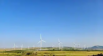 In Israel's northern mountainous region are located wind turbines.[9] The Israeli company, Enlight operates the Genesis Wind complex: 34 General Electric turbines which can produce 180MW.[10] 5 additional turbines can be added raising capacity to 207MW.[10][9] Emek HaBacha provides 109MW.[11] Gilboa provides 11.9MW.[12]