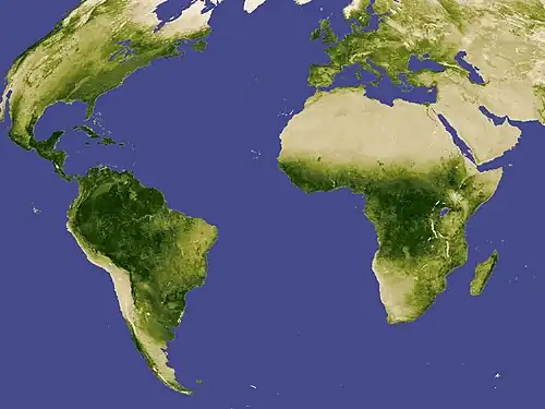 Besides their role as a resource for fuel and building material, trees protect the environment by absorbing carbon dioxide and by creating oxygen.[67] The destruction of rain forests is one of the critical causes of climate change. Deforestation causes carbon dioxide to linger in the atmosphere. As carbon dioxide accrues, it produces a layer in the atmosphere that traps radiation from the sun. The radiation converts to heat which causes global warming, which is better known as the greenhouse effect.[68]