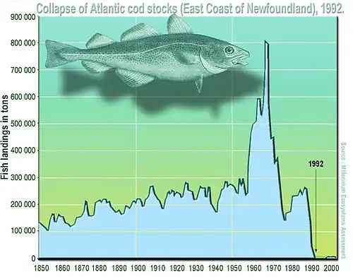 Atlantic cod stocks severely overfished leading to abrupt collapse
