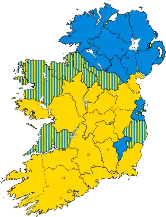 The act did not alter the overall distribution of parliamentary seats in Ireland.[2] It was originally proposed to merge twelve smaller boroughs into six pairs on the model of Scottish district of burghs and Welsh contributory boroughs, with the freed-up seats being transferred to the six most populous county constituencies. This was rejected by Parliament, although the act as passed did alter the boundaries of those parliamentary boroughs which were also municipal boroughs, extending the parliamentary boundary to include all the municipal boundary.[3]