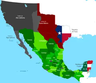 The Republic of Yucatán (Spanish: República de Yucatán) was a sovereign state during two periods of the nineteenth century. The first Republic of Yucatán, founded May 29, 1823, willingly joined the Mexican federation as the Federated Republic of Yucatán on December 23, 1823, less than seven months later.[1][2] The second Republic of Yucatán began in 1841, with its declaration of independence from the Centralist Republic of Mexico. It remained independent for seven years, after which it rejoined the United Mexican States. The area of the former republic includes the modern Mexican states of Yucatán, Campeche and Quintana Roo. The Republic of Yucatán usually refers to the second republic (1841–1848).