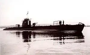 From 1935 to 1937, all ships underwent a major overhaul.[1][8] At the outbreak of World War II, the ships served in the Mediterranean Sea, forming part of the 4th Submarine Flotilla stationed at Bizerte.[9] After the Armistice was concluded between France and Germany, all ships except Morse, sunk off Tunisia on June 16, 1940, and Narval, which went to the Free French Naval Forces, joined the Vichy French navy.[9] On June 25, 1941, during Operation Exporter, Souffleur was torpedoed and sunk off Beirut, Lebanon, by the British submarine Parthian.[10][11][12] On November 27, 1942, during the scuttling of the French fleet in Toulon, Caïman was scuttled, later raised by the Italians and on March 11, 1944, sunk again by American planes.[8][2] Marsouin was not scuttled and escaped from Toulon to join the Free French Naval Forces[13] and served until 1946.[8][2]