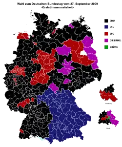 ^ a b The Christian Democratic Union and the Christian Social Union of Bavaria call themselves sister parties. They do not compete against each other in the same states and they form one group within the Bundestag.