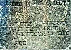 Detail from a North Mississippi Christian cemetery headstone with the inscription: "May the resurrection find thee on the bosom of thy God."