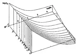 Universal sedimentation equation — drag coefficient, a function of Reynolds number and shape factor, 3D diagram