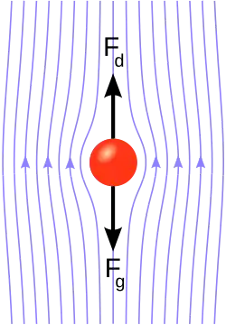 Creeping flow past a falling sphere: streamlines, drag force Fd and force by gravity Fg.