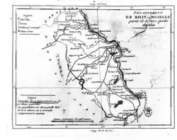 Rhin-et-Moselle (French: [ʁɛ̃ e mɔzɛl]; German: Rhein-und-Mosel) was a department of the First French Republic and First French Empire in present-day Germany. It was named after the rivers Rhine and Moselle. It was formed in 1797, when the left bank of the Rhine was annexed by France. Until the French occupation, its territory was divided between the Archbishopric of Cologne, the Archbishopric of Trier, and the Electorate of the Palatinate. Its territory is now part of the German states of Rhineland-Palatinate and North Rhine-Westphalia. Its capital was Koblenz.