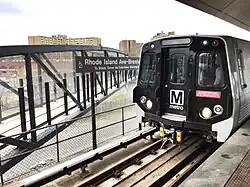 Rhode Island Avenue station (also known as Rhode Island Avenue–Brentwood) is a Washington Metro station in Washington, D.C., on the Red Line. The station is located in the Brentwood neighborhood of Northeast, on an elevated platform crossing Rhode Island Avenue NE (U.S. Route 1)