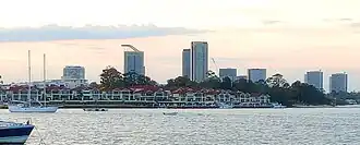 Since 2016, Rhodes has been connected to the residential suburb of Wentworth Point, on the western side of Homebush Bay, by the Bennelong Bridge.[2][3]