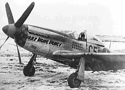In November 1943, the 357th Fighter Group was assigned to European Theater of Operations and was stationed at RAF Leiston in England, where the unit was now equipped with the North American P-51 Mustangs. On March 6, 1944, he shot down a Focke-Wulf Fw 190 over Bordeaux, France, his first aerial victory. On March 16, he was credited with the shared destruction of a twin-engine Messerschmitt Bf 110 and on March 18, he shot down a Messerschmitt Bf 109 over Augsburg, Germany, his second aerial victory. By the end of May 1944, he shot eight more enemy aircraft including two shared destructions, bringing his total aerial victories to nine and earned the title of flying ace. On July 1, he shot down two Bf 109s south of Saint-Quentin, France and later on the same month, he returned to the United States for shore leave.[10][11]