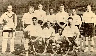 Richard Allen is standing at extreme left in this group photo of 1928 Indian Olympic field hockey team.