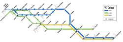 Rio de Janeiro Light Rail (Portuguese: VLT Carioca) is a modern light rail system serving Rio de Janeiro, Brazil. The system is among several new public transport developments in the region ahead of the city's successful bid for the 2016 Summer Olympics.[1] Its official name is VLT Carioca, the initialism "VLT" (which stands for veículo leve sobre trilhos, literally Light vehicle on rails) being equivalent to the English term light rail.