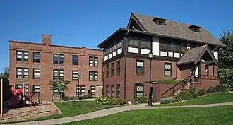 Maternity Hospital, also known as Ripley Memorial Hospital and currently known as Ripley Gardens, is a former hospital building in the Harrison neighborhood of Minneapolis, Minnesota. The hospital was established by Dr. Martha Ripley in 1886 in response to the exceptionally high mortality rates for women in childbirth. Dr. Ripley was one of only a few female physicians in the late 19th century, and she employed only women as physicians and board members. The hospital provided services for primarily poor, unmarried, and widowed women.[2] The hospital was originally located in a house at 316 15th Street South, but it quickly outgrew that house and moved to 2529 4th Avenue South. Demand continued to grow, so in 1896 the hospital purchased a house on 5 acres (2.0 ha) of land at the corner of Glenwood and Penn Avenues.[3] The hospital built the Marshall Stacy Nursery in 1909, followed by the Babies' Bungalow in 1910 and the Emily Paddock Cottage in 1911.[2] Also in 1911, Ripley appealed to the government for funds to build an even larger building. Ripley died on April 18, 1912, of a respiratory infection.[3]