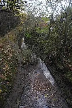Holbrook, in a concrete-slab lined channel alongside the M6 motorway in Great Barr, Birmingham