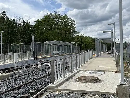 Riverdale Park North–UMD station is an under-construction light rail station in Riverdale Park, Maryland, that will be served by the Purple Line. The station will have two side platforms on the south side of River Road just west of Haig Drive. Located in the M Square Research Park, it will be one of five stations serving the University of Maryland, College Park (UMD).[2][3] As of 2022, the Purple Line is planned to open in 2027.[1]