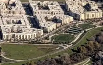 A pedestrian bridge connects the park to the historic James Lick Mansion across the Guadalupe River, the 19th century estate built by local land baron James Lick who was the wealthiest man in California, at the time of his death in 1870.[4]