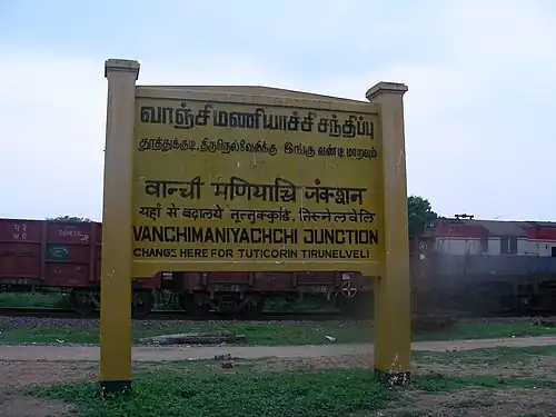 Maniyachi railway station, where Ashe was assassinated (currently renamed as Vanchi Maniyachi after Vanchinathan)