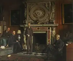 In January 1908, Cecil wrote to fellow Unionist free trader Arthur Elliot: "To me, the greatest necessity of all is to preserve, if possible, a foothold for Free Trade within the Unionist party. For, if not, I and others who think like me, will be driven to imperil either free trade or other causes such as religious education, the House of Lords, and even the Union, which seem to us of equal importance".[8] In March 1910 Cecil and his brother Lord Hugh, unsuccessfully appealed to Chamberlain that he should postpone advocating food taxes at the next election in order to concentrate on opposing Irish Home Rule.[9]