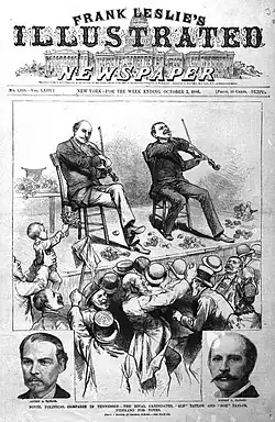 The Taylors' 1886 campaign, as depicted on the cover of the October 2, 1886 issue of Frank Leslie's Illustrated Newspaper