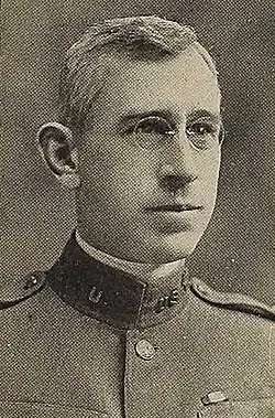 In 1916, the 10th Field Artillery was activated for federal service in World War I, and Danford commanded the regiment during its initial training at Tobyhanna Army Depot.[1] From February to July 1917, Danford was assigned as assistant professor of military science at Yale University,[7] and served as the mustering officer for members of the Connecticut National Guard as they entered federal service.[1] While at Yale, Danford co-authored Notes on Training Field Artillery Details, a practical manual for teaching field artillery tactics and techniques.[9] It quickly became the Army's standard reference work for training field artillery soldiers, and went through numerous printings during and after World War I.[10] In July 1917, Danford served as mustering officer for members of the Pennsylvania National Guard, after which he traveled to Fort Sill, where he served as an artillery instructor.[1] Originally slated to join the 42nd Division, in August, he was instead assigned to the 302nd Field Artillery, a unit of the 76th Division.[1] He trained with the regiment at Camp Devens, Massachusetts, after which he was assigned to Plattsburgh Barracks, New York as senior instructor of field artillery for the Army's second wartime Officers' Training Camp.[1][7] He was promoted to major in August, and temporary lieutenant colonel on the same day.[1]
