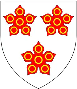 Arms of Southwell of Woodrising, Norfolk: Argent, three cinquefoils gules each charged with six annulets or