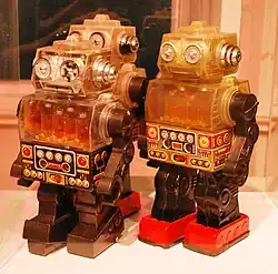 There have also been robots such as the teaching computer, Leachim (1974).[96] Leachim was an early example of speech synthesis using the Diphone synthesis method. 2-XL (1976) was a robot shaped game / teaching toy based on branching between audible tracks on an 8-track tape player, both invented by Michael J. Freeman.[97] Later, the 8-track was upgraded to tape cassettes and then to digital.