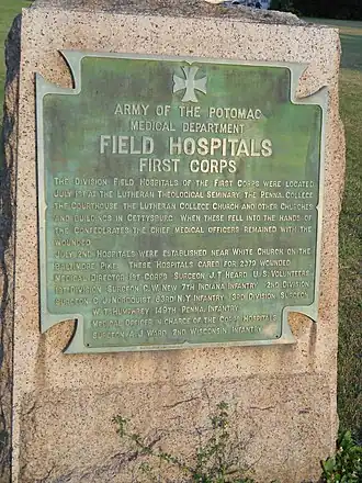 This district includes eleven contributing buildings and thirteen contributing sites, on thirteen contiguous properties, including eight farmsteads and White's Church (or Marks German Reformed Church). The farmsteads are Schwartz Farm, Shaeffer Farm, Trostle Farm, Lewis Bushman Farm, Diener Farm, Conover Farm, Lightner Farm, and Beitler Farm. The properties served as hospitals during the American Civil War for the 1st, 2nd, 3rd, 5th, 6th, and 12th corps of the Army of the Potomac in the weeks immediately following July 1863's Battle of Gettysburg.[2]