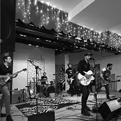 Vocalist and guitarist Rocky Catanese grew up in New Brunswick, New Jersey, and played in the band Let Me Run. After Let Me Run disbanded in 2013, Catanese began working on songs for a solo project, however he soon was collaborating with former bandmate and drummer Trevor Reddell. Shortly after, bassist Matt Balog, and guitarists Chris Grzan and Joe Lanza joined the band, which was named Rocky & the Chapter.[1] The band cites musical influence from Ryan Adams, Counting Crows, Jawbox, Nirvana, Pearl Jam, and Tegan and Sara, and they draw comparison to the music of Motion City Soundtrack, Jimmy Eat World, and the Gaslight Anthem.[2][3] On their live performances, Jim Testa calls Rocky & the Chapter "a muscular example of Hub City rock," and Speak Into My Good Eye editor Phil Shepard says "I get the hype[,] these guys bring it with great energy and feeling."[4][5]