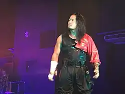 After Buffalo and Tsubasa failed to regain the title from Liger and Murahama on August 13, Buffalo turned on Tsubasa on November 15 and jumped to Big Boss MA-G-MA's Kishiwada Gurentai stable.[27][28] Buffalo and Tsubasa had their big grudge match against each other on May 29, 2004, ending with Buffalo picking up the win.[28] On December 19, Buffalo and Daio Quallt defeated Billyken Kid and Tigers Mask to win the Osaka Pro Wrestling Tag Team Championship.[29] Their reign would last until February 13, 2005, when they were defeated by Billyken Kid and Perro.[30] On April 29, Buffalo and Tsubasa reformed Infinity for one night, when they defeated Kageki Pro representatives Aztec and Kaze in a special interpromotional tag team match.[23] After the Kishiwasa Gurentai was disbanded in the aftermath of Big Boss MA-G-MA leaving Osaka Pro, Buffalo, Hideyoshi, Masamune and Toru Owashi formed the promotion's new top villainous alliance, Buraikan, on June 25.[31] In November, Buffalo made it to the semifinals of the Tenno-zan for the third time, but was there once again defeated by Super Delfin.[32] On January 28, 2006, longtime babyface Billyken Kid shocked Osaka Pro by turning on Tigers Mask and the Osaka Pro Seikigun ("regular army") and taking over Buraikan, which was then renamed Vendaval, with Buffalo becoming his second-in-command.[33] On February 26, Buffalo and BKK defeated Flash Moon and Tigers Mask to win the Osaka Pro Wrestling Tag Team Championship.[34] The two teams faced each other in a rematch on June 3 in the finals of the 2006 Tag Festival, which was won by Flash Moon and Tigers Mask.[35] On July 15, Buffalo added another title to his résumé, when he defeated ten other men to win the Osaka Pro Wrestling Battle Royal Championship.[36] However, on July 29, Osaka Pro announced that Buffalo had suffered a rotator cuff tear in his right shoulder and stripped him of both the Osaka Pro Wrestling Tag Team and the Osaka Pro Wrestling Battle Royal Championship.[37]
