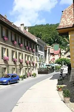 The village, which lies on the Nozon river, has about 450 inhabitants. The town has a notable Romanesque church. The monastery of Romainmôtier (Romanum monasterium) was founded by Romanus of Condat, a leader of monks, after whom it was named.[3]