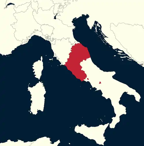 The Roman Republic (Italian: Repubblica Romana) was a sister republic of the First French Republic that existed from 1798 to 1799. It was proclaimed on 15 February 1798 after Louis-Alexandre Berthier, a general of the French Revolutionary Army, had occupied the city of Rome on 11 February. It was led by a Directory of five men and comprised territory conquered from the Papal States. The Roman Republic immediately incorporated two other former-papal revolutionary administrations, the Tiberina Republic and the Anconine Republic. It proved short-lived, as Neapolitan troops restored the Papal States in October 1799.