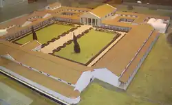 The Roman villa was typically a country house for wealthy people, that was accessible from the city, and served as a retreat from urban living. Villas and their gardens are categorized by location: maritime, suburban, and country villas being the most common kinds.[11] A notable example is the maritime villa at Laurentum, which Pliny the Younger describes at length in his letters.[12] Villa gardens were lavishly decorated, and could include private spaces for exercise, known as gymnasiums, and larger open areas for hunting game.[13]