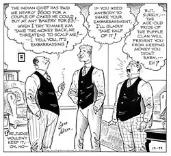 A resident in the second Room and Board's boarding house was Judge Puffle, very similar to Major Hoople, the central character of Ahern's Our Boarding House. The mustache was slightly different, the nose was slightly smaller, and instead of a fez like that worn by Hoople, Puffle had a beret.[3][4]