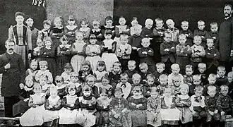 In 1890, a public school opened at the corner of 103rd and Michigan and the church fathers in the area felt that a second school was needed to provide Christian educational opportunities for the area's Dutch-speaking residents. A commission was founded to explore options for another school. It was eventually built on 104th Street as a complement to the existing school several blocks away. Classes began on 5 October 1891 with 25 students in attendance.[3] The two schools existed separately but remarkably close to each other. The 104th Street school was controlled by the parents of the students while the 111th Street school was controlled by the principal.[4] The two resisted many attempts to amalgamate due to the curriculum, financial, and personnel issues involved. One thing that the schools did have in common was the Dutch Language. It was not until 1910 that the 111th Street school switched to an English language curriculum for every subject. The 104th Street school followed the next year.[3] The schools survived separately through two world wars and the Great Depression before finally coming together in 1947.[4]