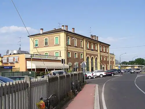 Rovato (Italian: Stazione di Rovato) is a railway station serving the town of Rovato, in the region of Lombardy, northern Italy. The station opened on 5 March 1878 and is located on the Milan–Venice railway and Bergamo–Brescia railway. The train services are operated by Trenord.