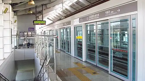 Royal Tomb of King Suro Station (Korean수로왕릉역; Hanja首露王陵驛) is a station of the BGLRT Line of Busan Metro in Oe-dong, Gimhae, South Korea.