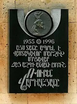 7 Kievyan str, Yerevan: “In 1955-1996, the honored trainer, judge, and famous Armenian wrestler Ruben Vardanyan lived in this house.”