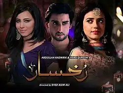 Rukhsaar (Urdu: رُخسار lit: Cheek/taste) is a Pakistani family drama series, produced by Abdullah Kadwani and Asad Qureshi under their production banner 7th Sky Entertainment. The drama aired weekly on Geo Entertainment every Monday from 9 December 2013. It stars Sumbul Iqbal, Agha Ali, Ushna Shah and Imran Aslam in lead roles.[1]