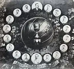 Poster of the SPAC football team honoring the three consecutive titles (1902-04).
