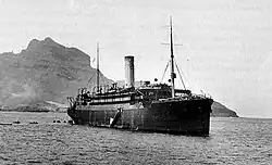 In December 1914 Laurentic sailed from Liverpool via Sierra Leone and Lagos to Kamerun, where she assisted in the Kamerun campaign. In September the Royal Navy had captured several German merchant ships that had sought refuge in the Wouri estuary. On 26–30 December Laurentic discharged prize crews from five of the captured ships.[20]