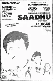 Saadhu (transl. Naive) is a 1994 Indian Tamil-language action film written and directed by P. Vasu, starring Arjun and Raveena Tandon, with Vijayakumar, Goundamani and Radha Ravi in supporting roles. The film marked the debut of Raveena Tandon in Tamil cinema.[1] It was released on 22 July 1994 and became a flop at the box office.[2][3]