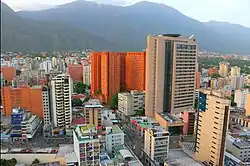 Originally, the area where today stands the commercial and financial sector Sabana Grande, was an agricultural town in which there were some coffee plantations, such as Hacienda Ibarra, which extended to the Central University of Venezuela and part of the neighborhoods Colinas de Bello Monte and Las Mercedes. At first, the town of Sabana Grande was connected to the agricultural community of Chacao.[1] Hacienda Ibarra was expropriated during the government of Isaías Medina Angarita to modernize the city and part of the previous house is still conserved in the campus of the Central University of Venezuela.[2] The main house of this hacienda was located in Bello Monte of the financial district Sabana Grande, and this house no longer exists.[3] The town of Sabana Grande was the communication route between Caracas to the large plantations (haciendas) located on the outskirts of the city.[4]