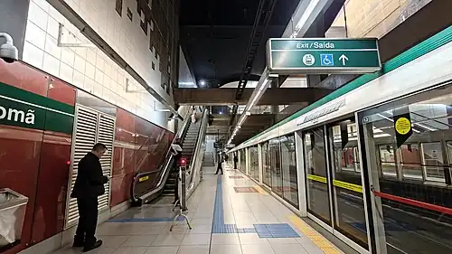 Sacomã is a station on Line 2 (Green) of the São Paulo Metro.[2] From the station, there is access to Sacomã Terminal, a large bus terminal that includes access to Expresso Tiradentes as well as municipal and intercity bus lines.