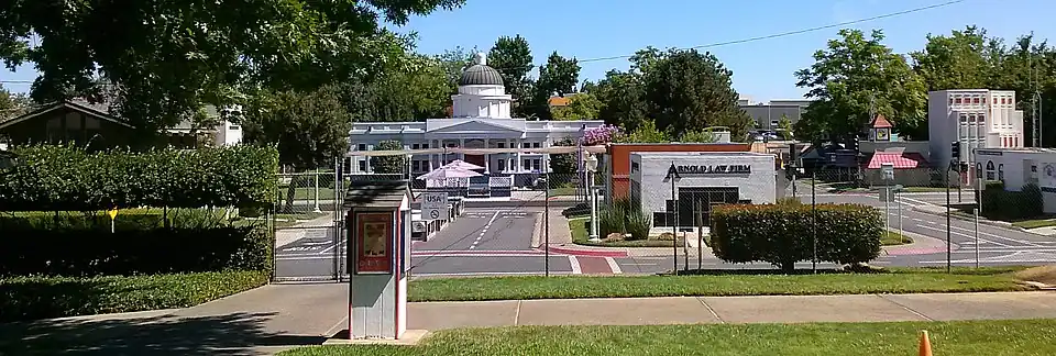 Safetyville, USA is a traffic park and miniature city that spans a little over 3 acres of land in Sacramento, California. It is a program designed to provide safety education to young children in an interactive manner. The miniature town features scaled-down replicas of the California State Capitol building, municipal building, business buildings, and various streets in Sacramento, California.